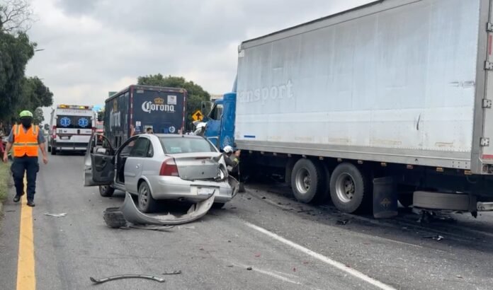 Un camión tipo tortón con fallas en los frenos ocasionó un accidente múltiple en la autopista México-Querétaro, a la altura de Bernardo Quintana con dirección a Celaya.